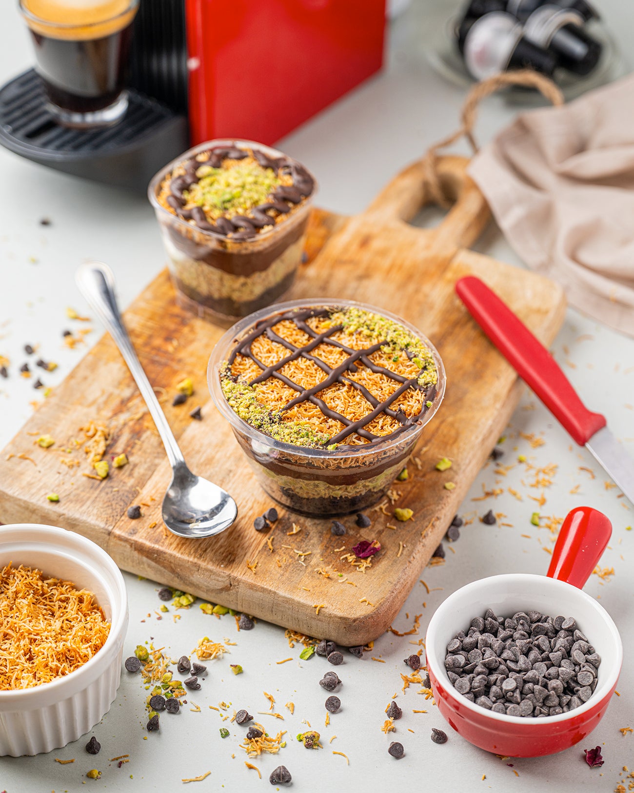 A luscious blend of smooth pistachio cream, soft cake, and rich chocolate, creating an irresistible treat.